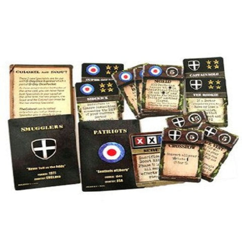 This set includes 2 Legendary Units for D-Day Dice: The Smugglers and The Patriots, including new Specialists and items, plus a double sided card representing the Colonel and Scout for D-Day Dice Pocket.